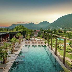 Os hóspedes podem relaxar no terraço bar do hotel, que possui uma localização central em Merano.